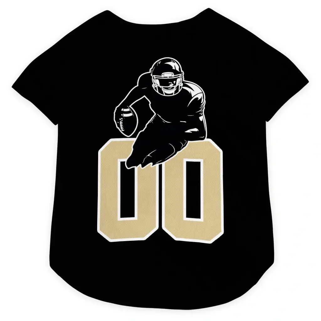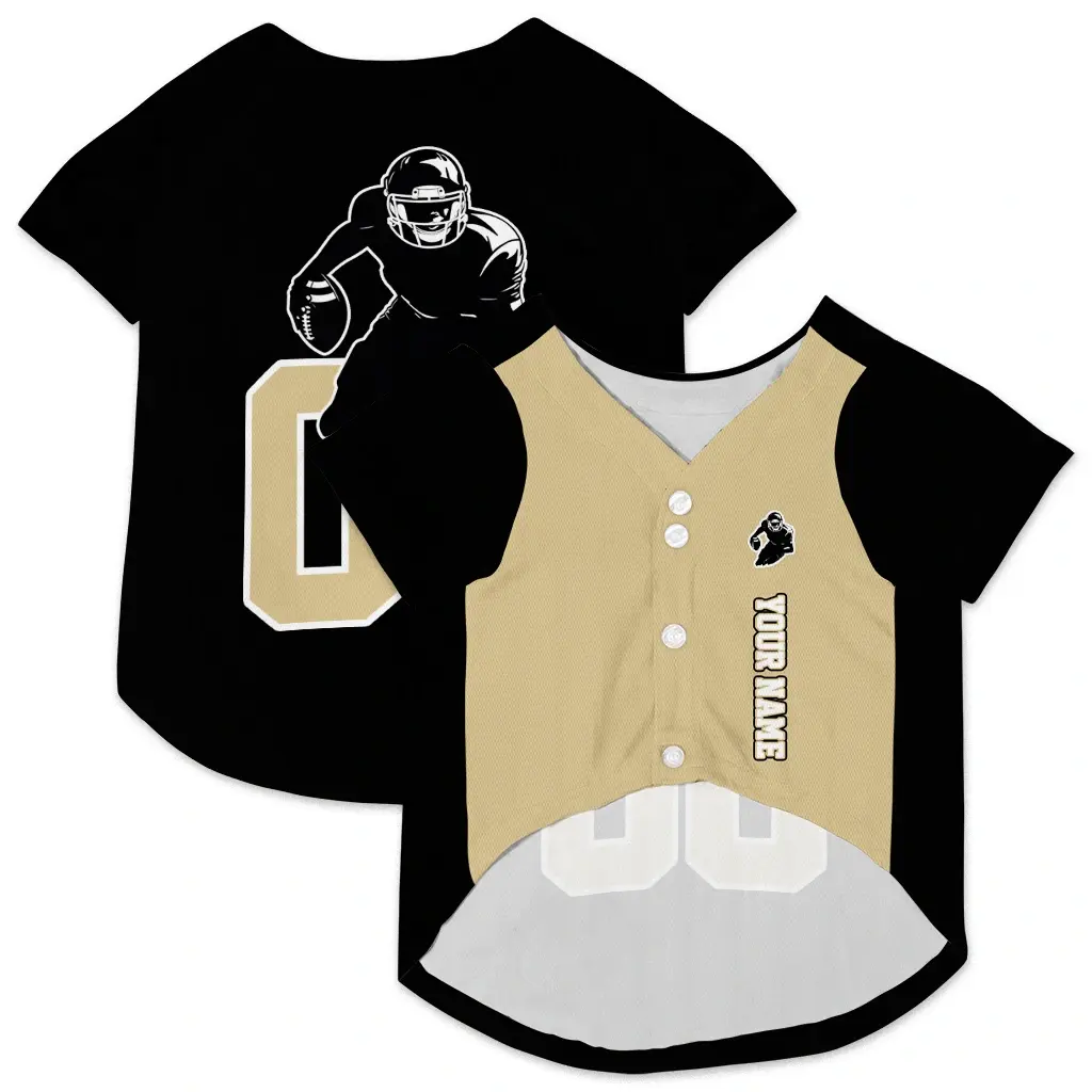 Bring the stadium energy to your home with our Custom Black and Gold Classic Style Dog Jersey – Personalized with Name and Number. This breathable dog shirt is meticulously designed for dog parents who want to combine their love for the game with optimal comfort for their furry companions. Whether it’s a weekend tailgate or a neighborhood walk, your dog will lead the pack in this vibrant, sports-inspired dog jersey.