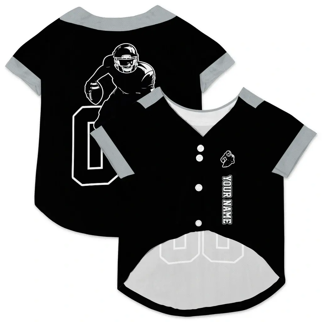 Custom Black and Gray Classic Style Dog Jersey – Personalized with Name and Number