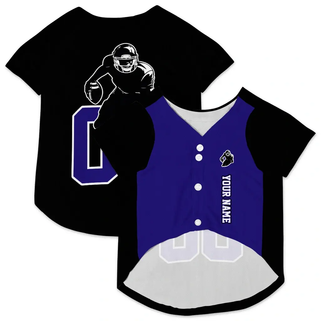 Bring the stadium energy to your home with our Custom Black and Purple Classic Style Dog Jersey – Personalized with Name and Number. This breathable dog shirt is meticulously designed for dog parents who want to combine their love for the game with optimal comfort for their furry companions. Whether it’s a weekend tailgate or a neighborhood walk, your dog will lead the pack in this vibrant, sports-inspired dog jersey.