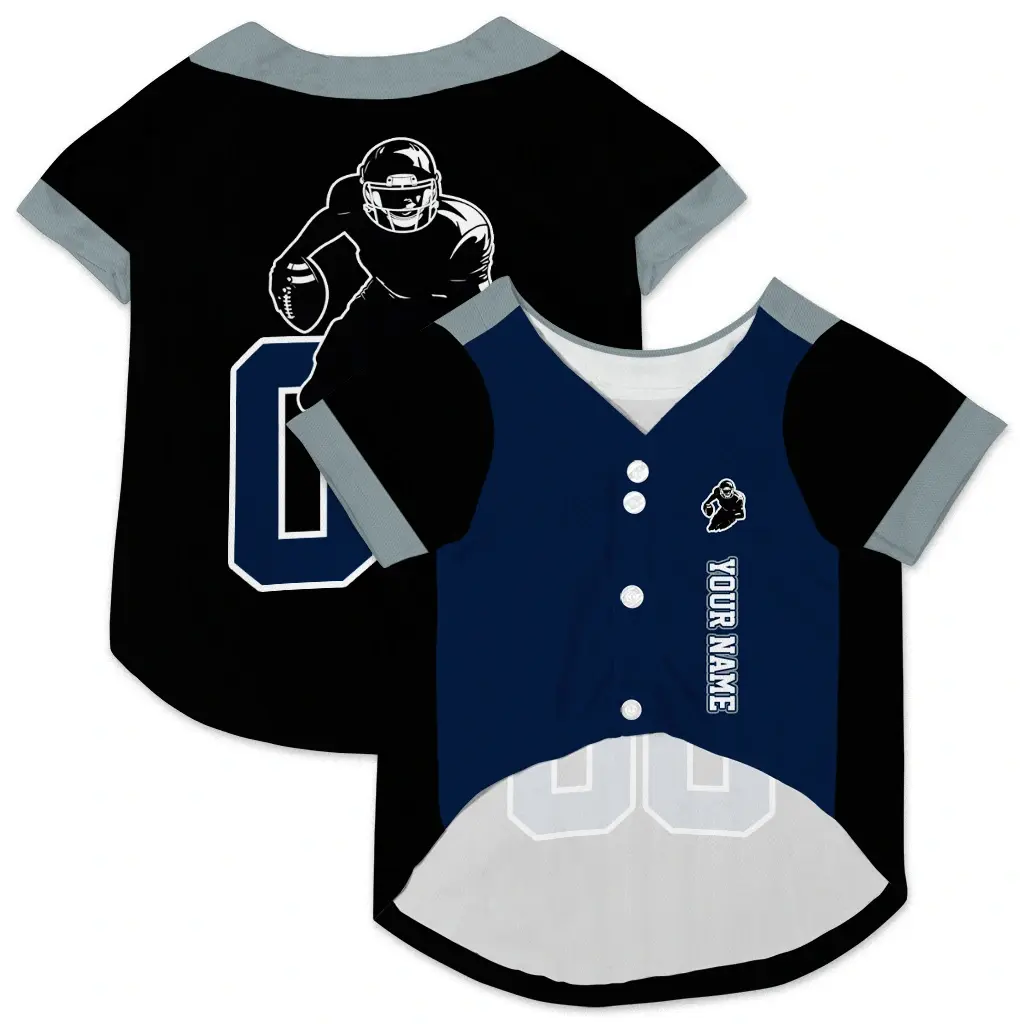 Custom Black, Blue and Gray Classic Style Dog Jersey – Personalized with Name and Number