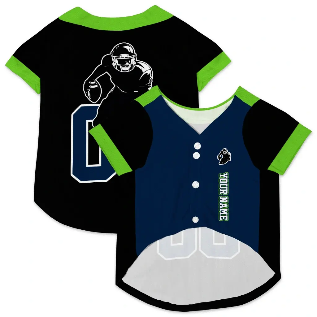 Custom Black, Blue and Hot Green Classic Style Dog Jersey – Personalized with Name and Number