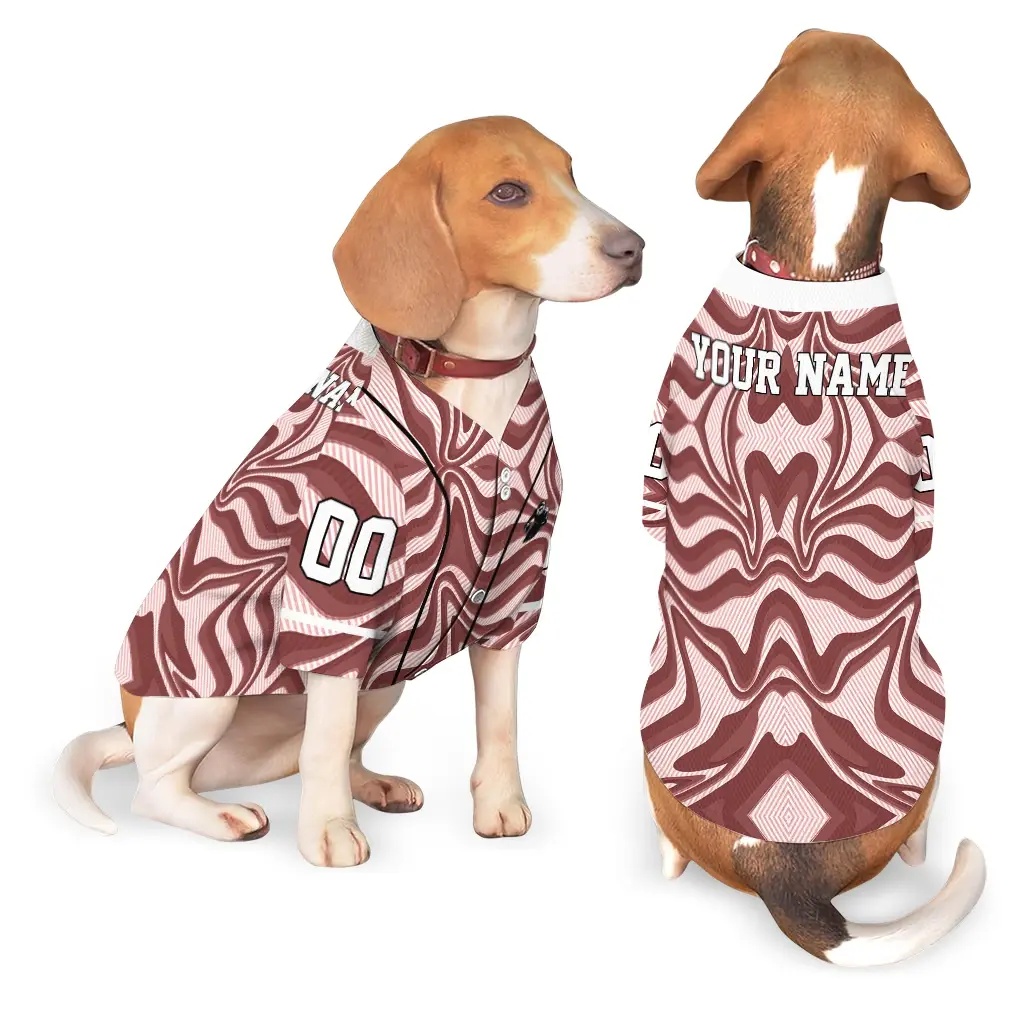 Custom Burgundy Wavy Energy Dog Jersey – Personalized with Name and Number