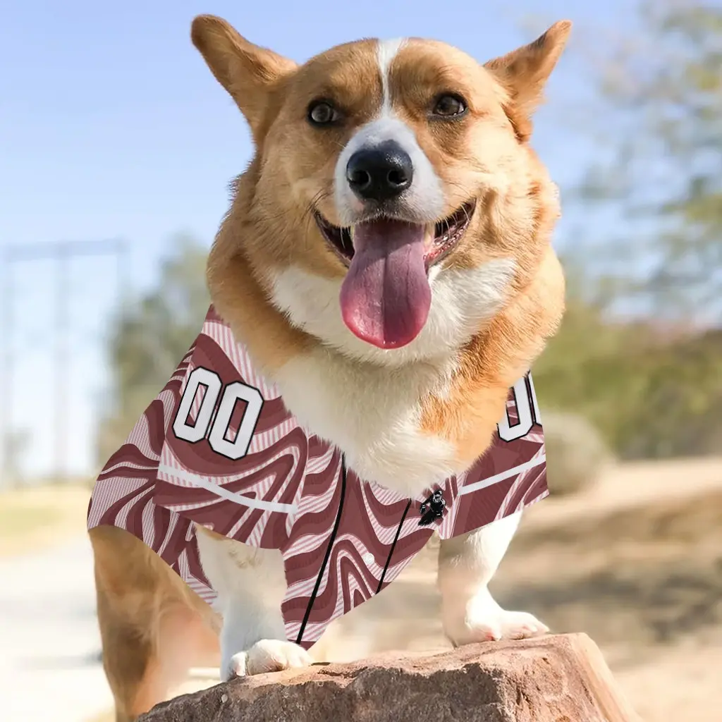 Bring the stadium energy to your home with our Custom Burgundy Wavy Energy Dog Jersey – Personalized with Name and Number. This breathable dog shirt is meticulously designed for dog parents who want to combine their love for the game with optimal comfort for their furry companions. Whether it’s a weekend tailgate or a neighborhood walk, your dog will lead the pack in this vibrant, sports-inspired dog jersey.