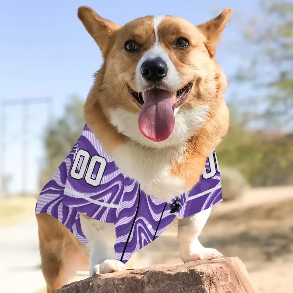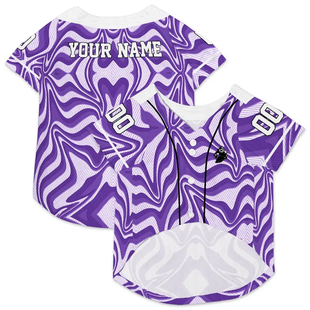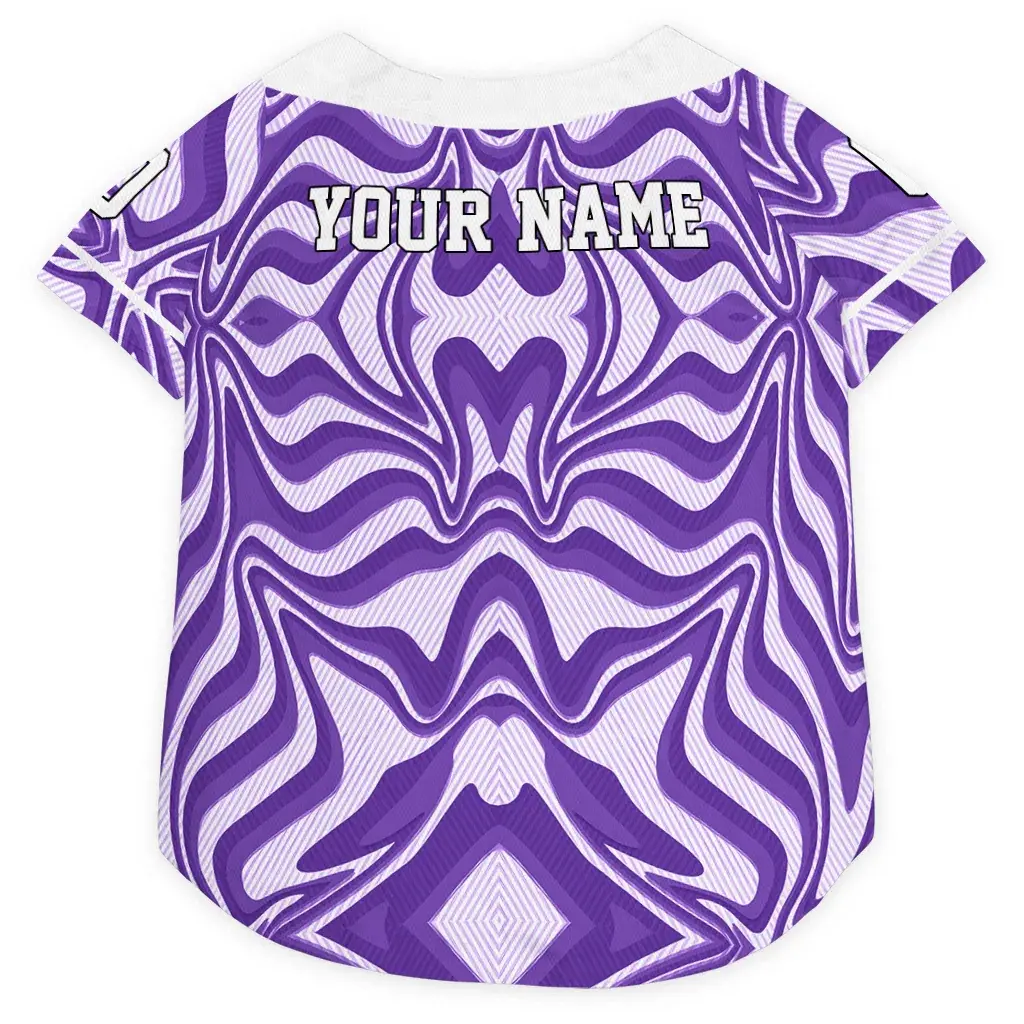 Bring the stadium energy to your home with our Custom Hot Purple Wavy Energy Dog Jersey – Personalized with Name and Number. This breathable dog shirt is meticulously designed for dog parents who want to combine their love for the game with optimal comfort for their furry companions. Whether it’s a weekend tailgate or a neighborhood walk, your dog will lead the pack in this vibrant, sports-inspired dog jersey.