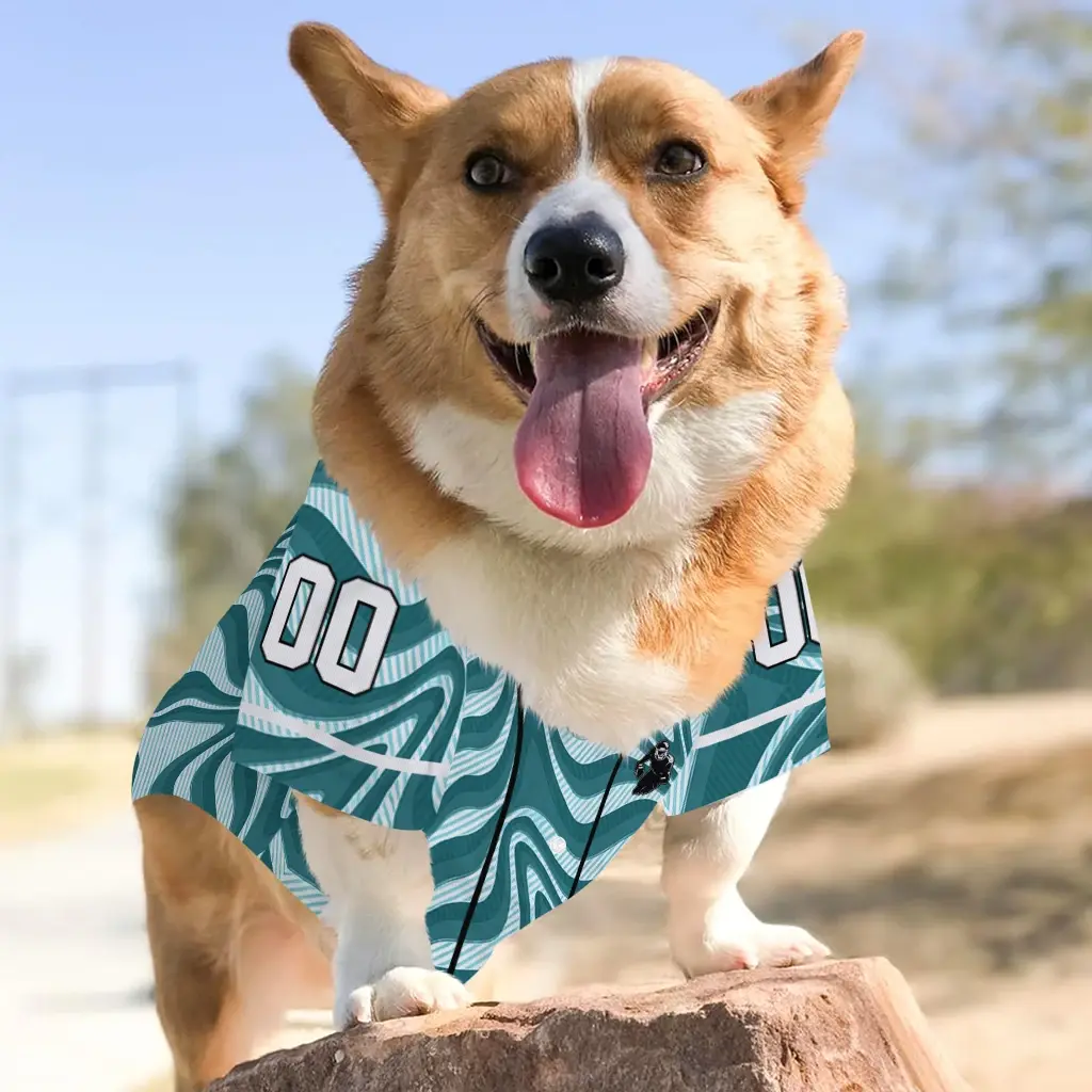 Custom Midnight Green Wavy Energy Dog Jersey – Personalized with Name and Number