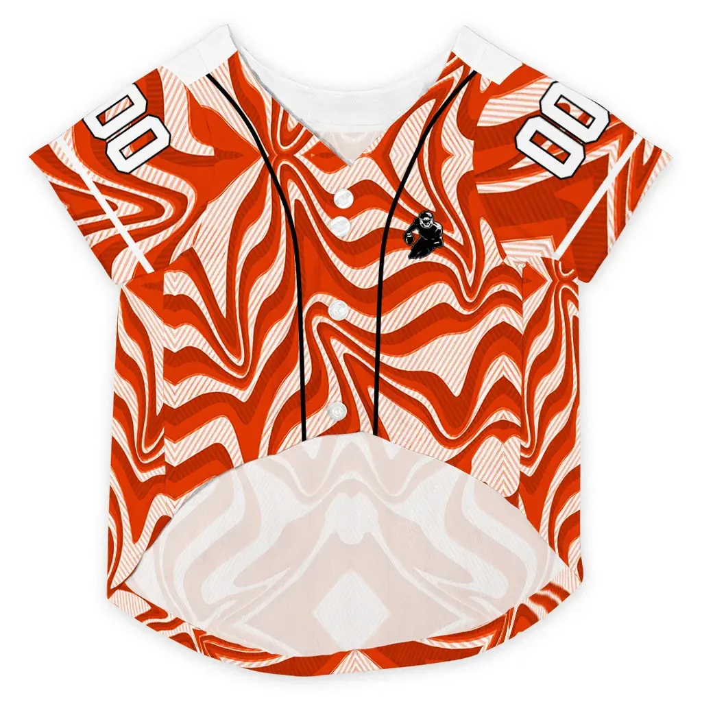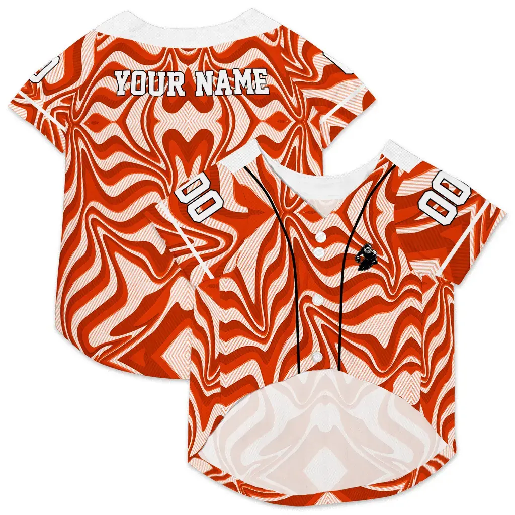 Bring the stadium energy to your home with our Custom Orange Wavy Energy Dog Jersey – Personalized with Name and Number. This breathable dog shirt is meticulously designed for dog parents who want to combine their love for the game with optimal comfort for their furry companions. Whether it’s a weekend tailgate or a neighborhood walk, your dog will lead the pack in this vibrant, sports-inspired dog jersey.